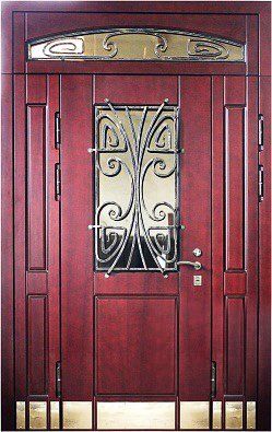 Поговорим об отделке. Вариантов декора дверей много. В большинстве случаев, для отделки элитных дверей используется массив натурального дерева или натуральный шпон с фрезеровкой. Цвет двери так же делается по желанию заказчика. Очень красиво и представительно выглядят двери с ковкой и стеклом.