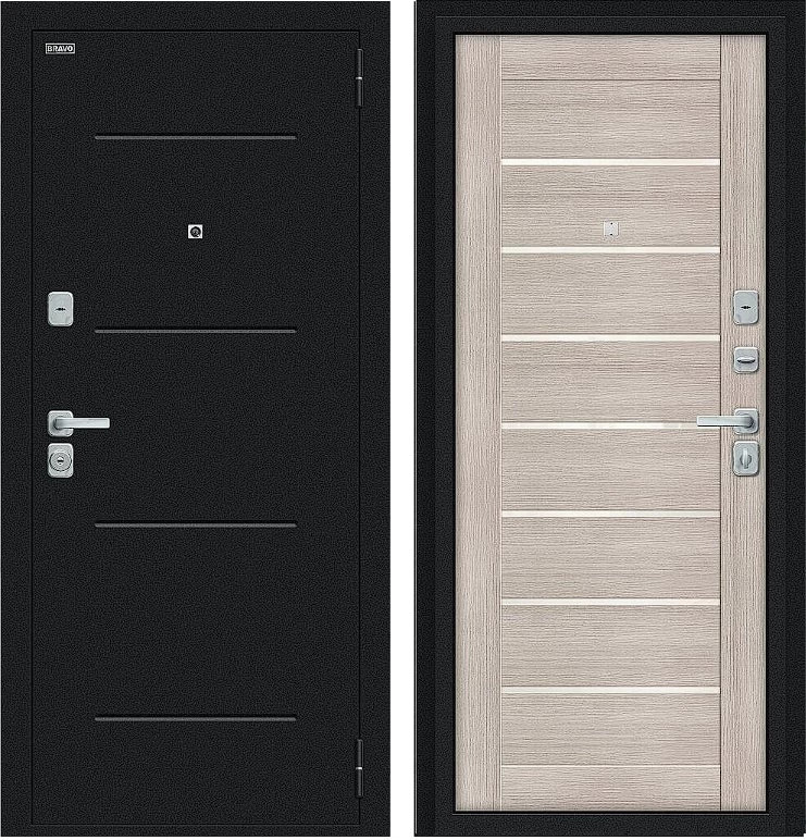 Надежная входная Дверь Браво Техно/BChrome Букле черное/Cappuccino Melinga премиум класса по цене 34 951 руб. Большая толщина стали защитит от проникновения в ваш дом, квартиру или коттедж. Используется очень качественная фурнитура: замки, цилиндры, ручки, защелки. Покрытие и отделка двери изготовлено под внимательным контролем производителя. Дверь имеет долгий срок службы и гарантию.